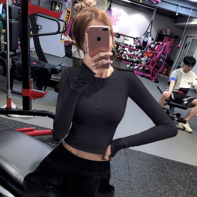 Women Workout Crop Tops Athletic Fitness Tight Tee with Thumb Hole Seamless Shirt 3019