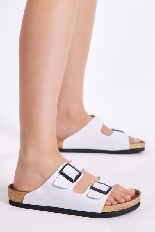 Women double buckle nubuck slippers comfortable molded poly sole tber510