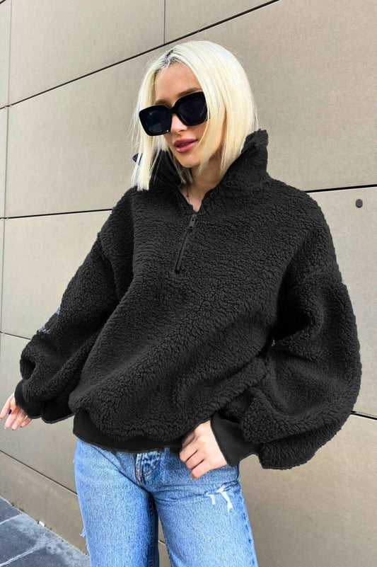 1413 PLUSH ZIPPER COLLAR SWEATSHIRT