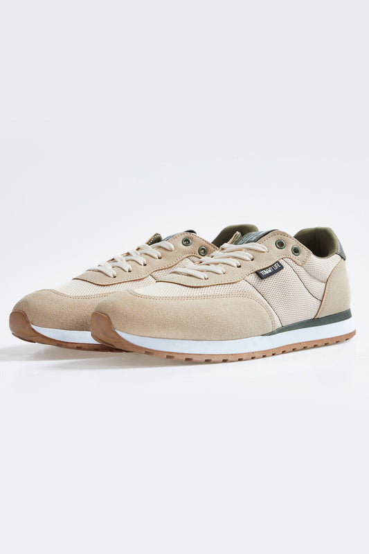 Lace-Up Mesh Detailed Suede Men's Sports Shoes 89116